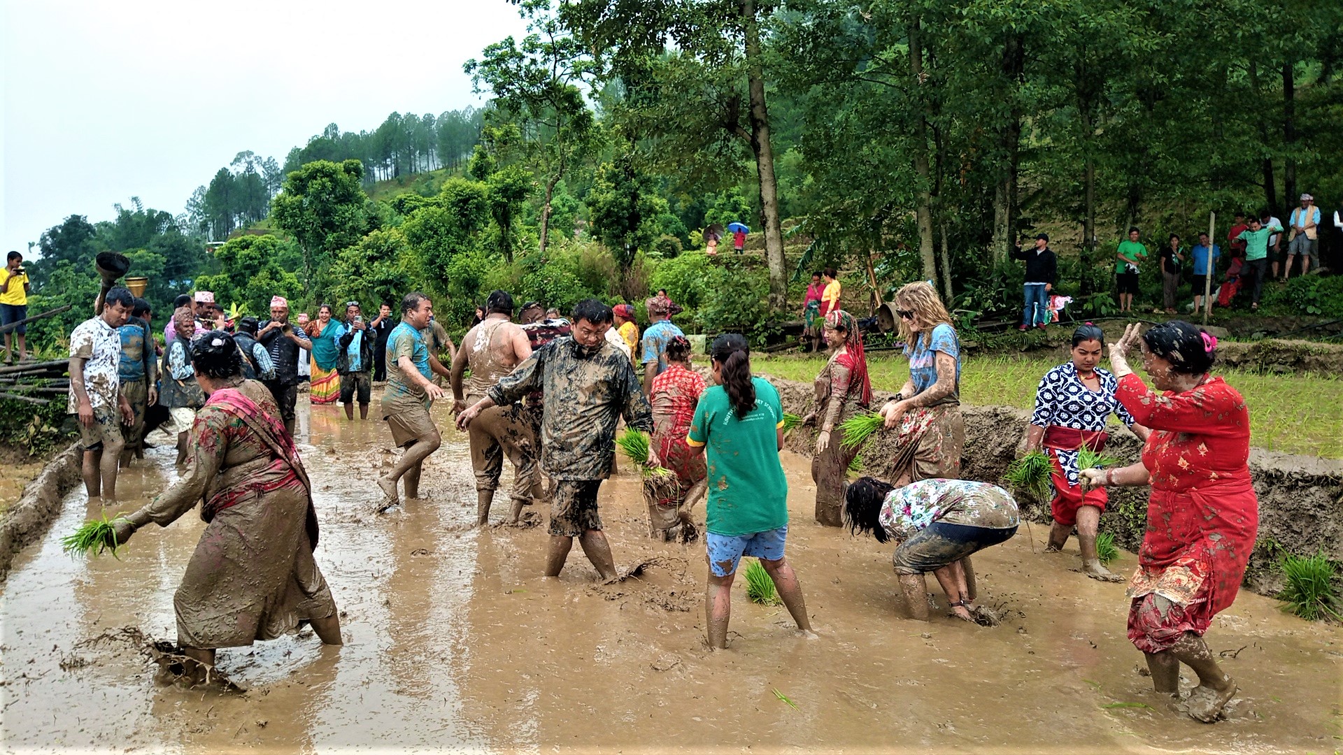 अखिल नेपाल किसान महासंघ जिल्ला कमिटी दोलखाको आयोजनामा भिमेश्वर नगरपालिका वडा नम्वर ५ किरातिछाप स्थित जरेवेशीमा धान रोपाई कार्यक्रम सम्पन्न गरेको हो । सम्पुर्ण मदुरहरु एक हौ भन्ने नारा सहित किसान महासंघ दोलखाले धान रोपाई कार्यक्रमको आयोजना गरेको हो । नेकपा एमाले निकट अखिल किसान महासंघ दोलखाले प्रत्येक वर्ष धान दिवसको अवसरमा रोपाई कार्यक्रम आयोजना गर्दै आएको छ । नेपालीहरुको मुख्य पेशा कृषि रहेको र माना रोपेर मुरी उत्पादन गर्ने समयमा किसानहरुलाई कृषिमा प्रोत्साहन गर्ने उदेश्यलेले रोपाई कार्यक्रमको आयोजना गरिएको नेकपा एमाले दोलखाका अध्यक्ष नर बहादुर श्रेष्ठले बताउनुभयो । नेपालीहरुको मुख्य पेशा कृषि भएता पनि कृषि उत्पादनमा नेपालीहरु आत्मानिर्भर वन्न नसकेको भन्नुहुँदै अखिल नेपाल किसान महासंघका केन्द्रीय सचिवालय सदस्य केशव चौलागाईले आधुनिकता संगै उत्पादन हुने खेतबारी बाँजो नराखी सवै जना उत्पादनको क्षत्रमा लाग्नुपर्ने बताउनु भयो ।