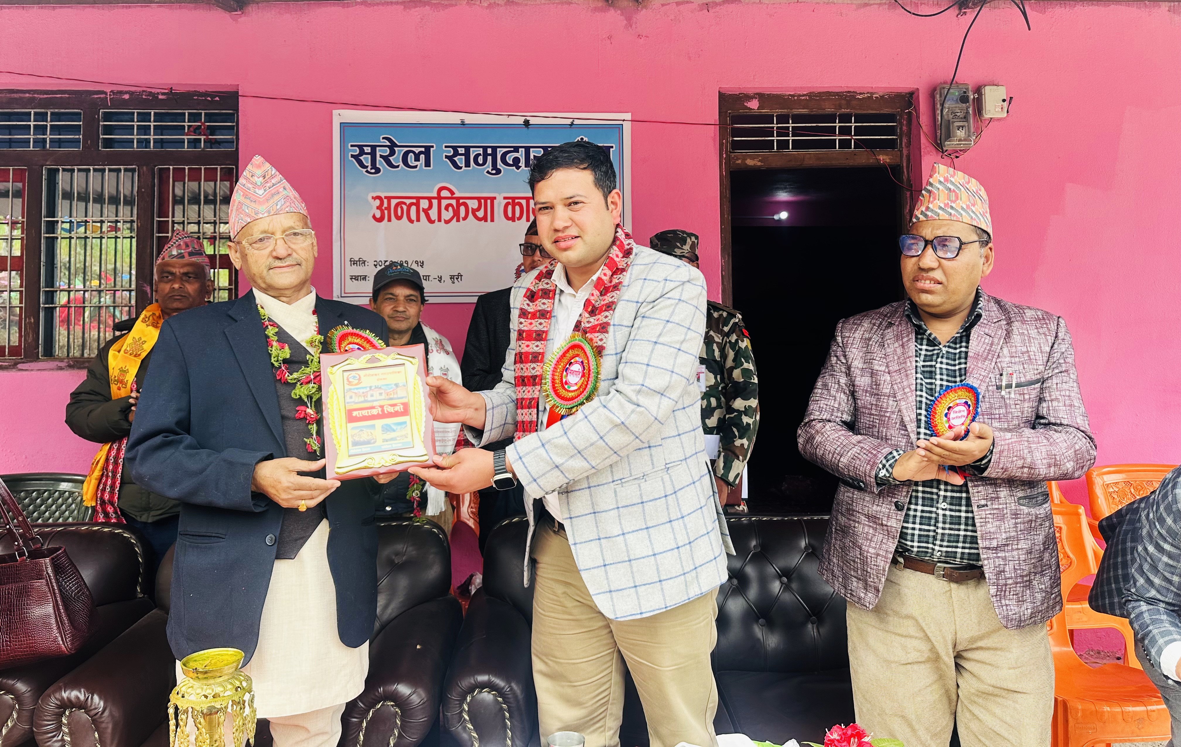गौरिशंकर गाउँपालिका दोलखाको आयोजनामा पालिकाको वडा नम्वर ५ सुरीमा एक कार्यक्रमका विच वागमती प्रदेशका प्रदेश प्रमुख यादवचन्द्र शर्माले सुरेल समुदाय संग अन्तरक्रिया गर्नुभएको हो । वागमती प्रदेशमा वसोवास गर्ने अल्पसंख्यक समुदायहरु संग प्रदेश प्रमुखको अन्र्तक्रिया कार्यक्रम अन्र्तगत वागमती प्रदेशका प्रदेश प्रमुख शर्माले सुरेल समुदाय संग अन्र्तक्रिया गर्नुभएको हो । पालिकाको वडा नम्वर ५ सुरीमा आयोजना गरिएको अन्तरक्रिया कार्यक्रममा नेपालकै अल्पसंख्यक सुरेल समुदायको सहभागिता रहेको थियो । अन्तरक्रिया कार्यक्रममा सुरेल समाजका अध्यक्ष सुवास सुरेलले समुदायको ऐतिहाँसीक, धार्मिक, तथा सांस्कृतीक विषय वस्तु र हालको अवस्थाको वारेमा जानकारी गराउनु भएको थियो । अल्पसंख्यक रुपमा रहेको सुरेल जातिहरुको उत्थानका लागि प्रदेशले विभिन्न सिपमुलक तथा रोजगारमुक कार्यक्रमहरु संचालन गर्नुपर्ने, सुरेलहरुका लागि छुटै आरक्षणको व्यवस्था गरिनुपर्ने जस्ता विषयहरु सुरेलहरुले प्रदेश प्रमुख समक्ष माग पेश गरेका थिए ।
