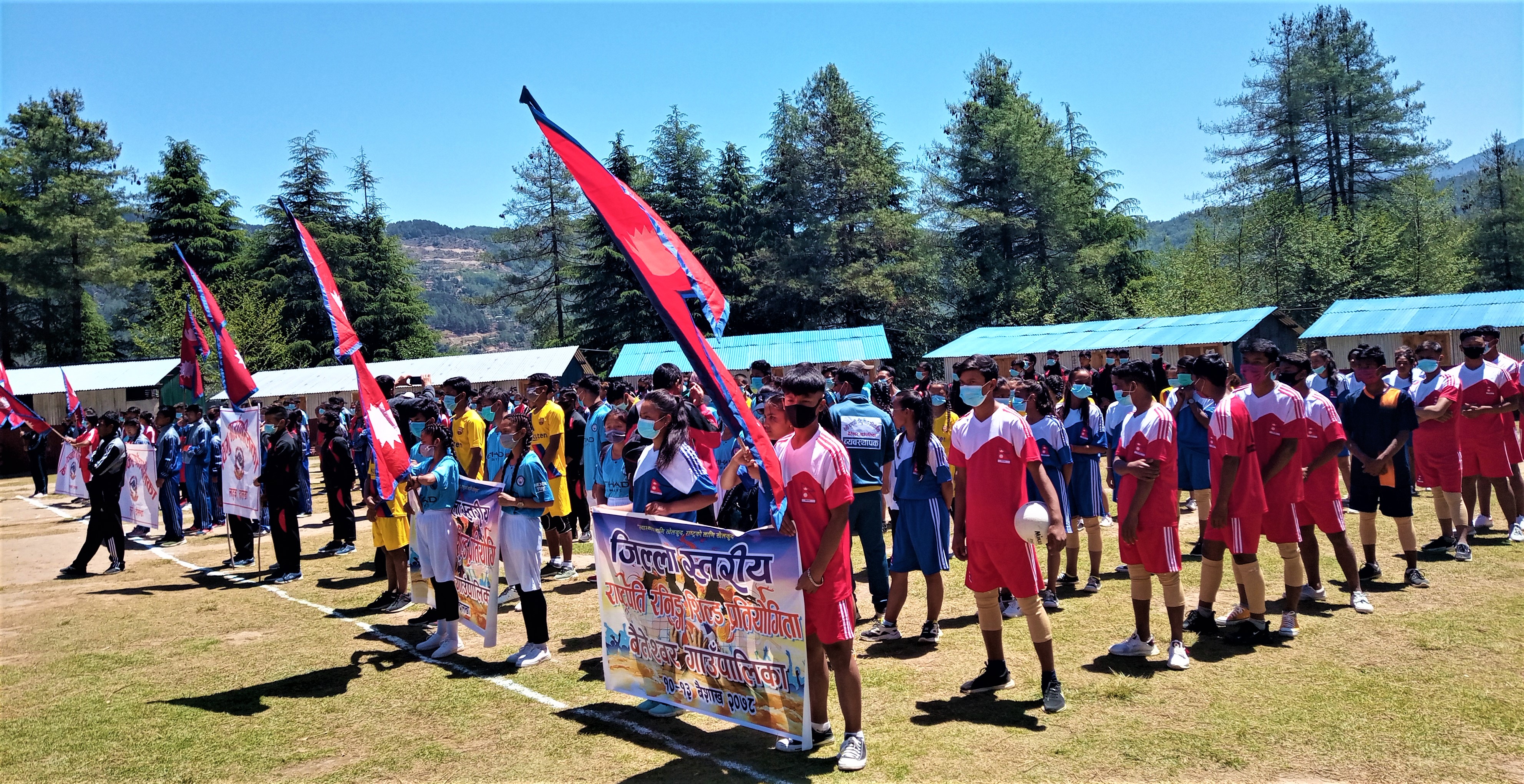 जिल्ला खेलकुद विकास समिती दोलखाको आयोजना र जिरीमावि जिरीको व्यवस्थापनमा जिरीमाविको खेलमैदानमा जिल्ला स्तरीय आठौँ राष्ट्रपती रनिङ सिल्ड तथा अन्तर पालिका छनोट खेलकुद प्रतियोगिताको सुरु भएको हो । जिल्ला खेलकुद समन्वय समिती दोलखाका अध्यक्ष तथा जिल्ला समन्वय समिती दोलखाका प्रमुख डवल पाण्डेको अध्यक्षतामा सुुरु भएको प्रतियोगिताको उदघाटन बागमती प्रदेश सदस्य माननिय पशुपती चौलागाईले गर्नुभएको छ ।