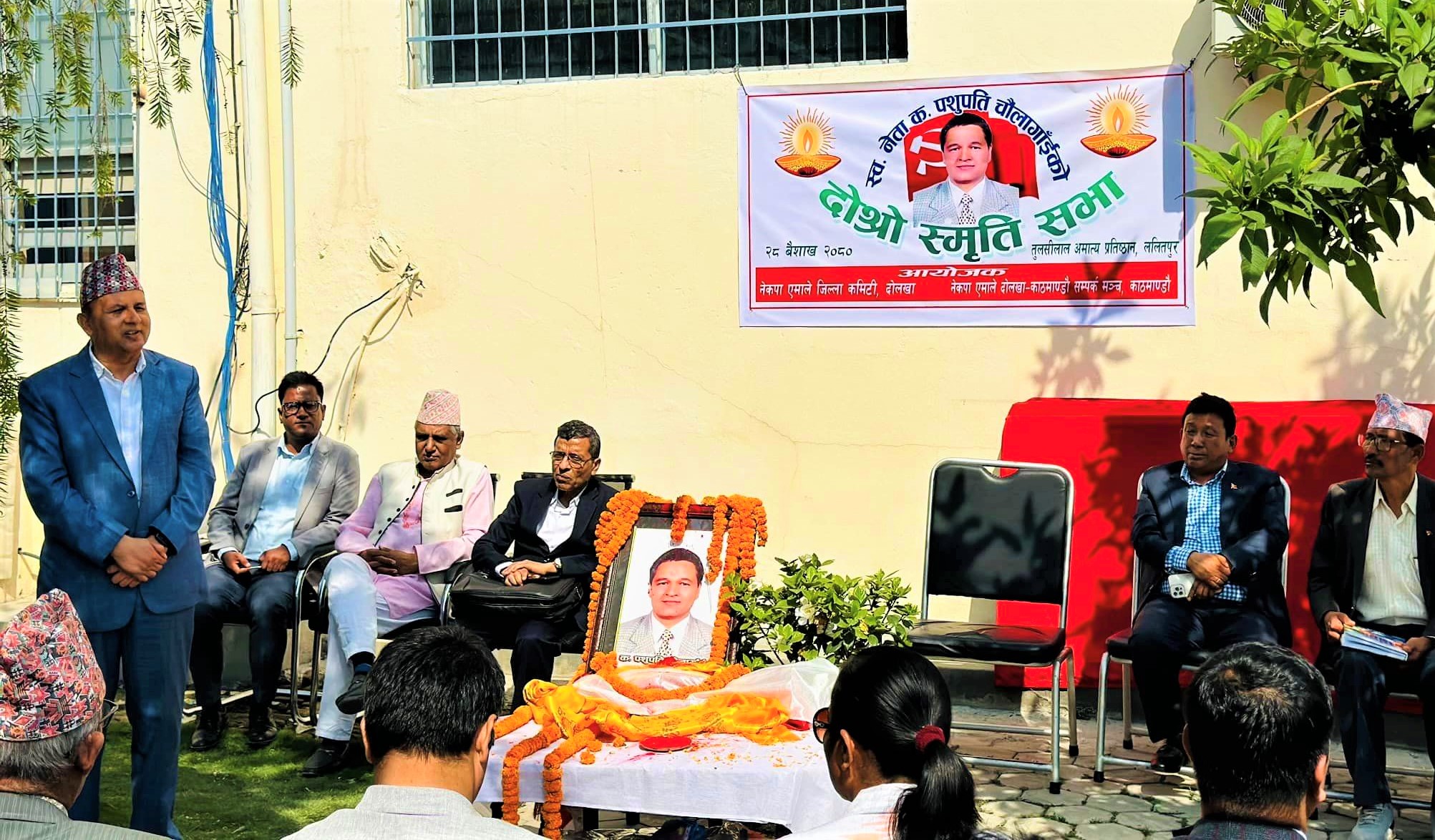 नेकपा एमालेका स्वर्गीय नेता पशुपती चौलागाईको सम्झनामा नेकपा एमालेले पार्टी केन्द्रीय कार्यालय च्यासलमा दोस्रो स्मृती सभा आयोजना गरेको छ । नेकपा एमाले जिल्ला कमिटी दोलखा र दोलखा काठमाण्डौ सम्पर्क मञ्चको संयुक्त आयोजनामा पार्टी केन्द्रीय कार्यालय च्यासलमा दोस्रो स्मृतीको अवसरमा श्रदाञ्जली सभाको आयोजना गरिएको हो । नेकपा एमालेका प्रभावशाली नेता स्वर्गीय पशुपती चौलागाईको निधन भएको दुई वर्ष पुरा भएको अवसरमा आयोजना गरिएको दोस्रो स्मृती सभालाई नेकपा एमालेका महासचिव शंकर पोखरेल, नेकपा एमालेका पोलिटव्यूरो सदस्यद्वाय पार्वत गुरुङ, आनन्द पोखरेल वागमती प्रदेश कमिटीका इन्चार्ज काशिनाथ दहाल लगाएतले पशुपती चौलागाईको पार्टी निर्माण र समाज परिर्वतनका निम्ती गर्नुभएको योगदानको उच्च कदर गर्नुहुँदै श्रदाञ्जली व्यक्त गर्नुभयो ।