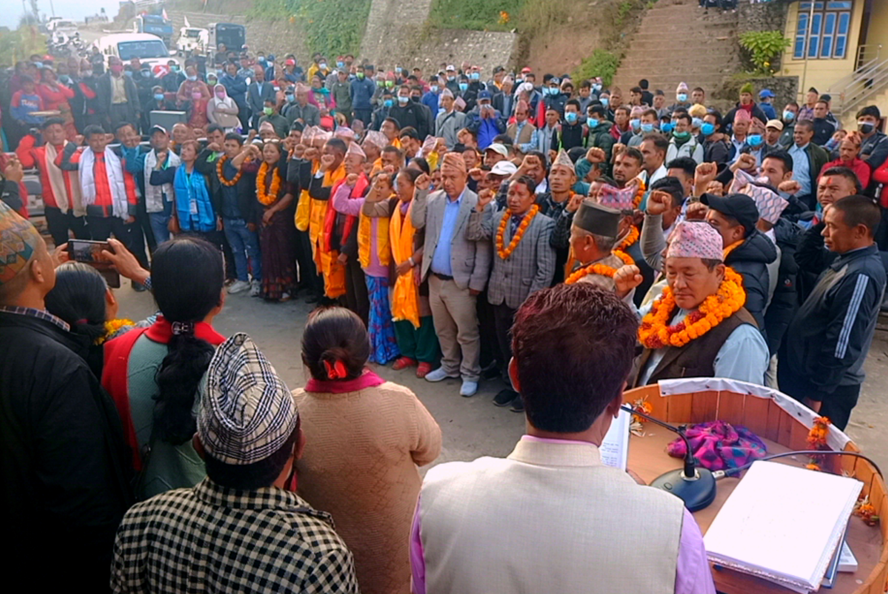 नब निर्वाचित नगर कमिटीका सदस्य तथा पदाधिकारी हरुलाइ नेकपा एमाले दोलखाका अध्यक्ष तथा नेकपा एमाले बागमती प्रदेश सदस्य ईश्वरचन्द्र पोखरेलले सपथ ग्रहण गराउनु भएको छ । नगर अधिबेशन कार्याक्रमलाइ संबोधन गर्नु हुँदै नेकपा एमाले दोलखाका इन्चार्ज पार्वत गुरुङले नेकपा एमाले हरेक नागरिकको मन मुटुमा बसेको पाटी भएको र जो कोहिले चहादैमा दोलखामा एमाले कम्जोर नहुने भन्नू हुँदै सबै कमिटीहरुलाइ संगठन बिस्तारमा लाग्न निर्देशन दिनु भयो । जिरी नगरपालिकाको सबै वडाहरुमा वडा अधिबेशन सप्पन्न भइ सकेको छ । सबै वडाहरुमा एमालेले नया नेतृत्व चयन गरि सकेको छ ।