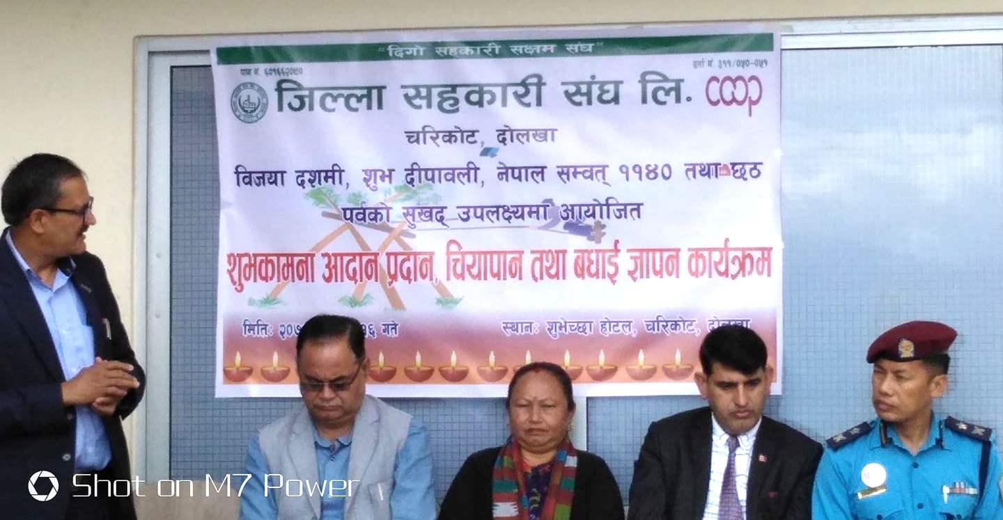 जिल्ला सहकारी संघ दोलखाले आज चरिकोटमा विजया दशमी तथा शुभ दीपावलीको अवसरमा शुभकामना आदन प्रदान तथा चियापन कार्यक्रम सम्पन्न गरेको छ ।