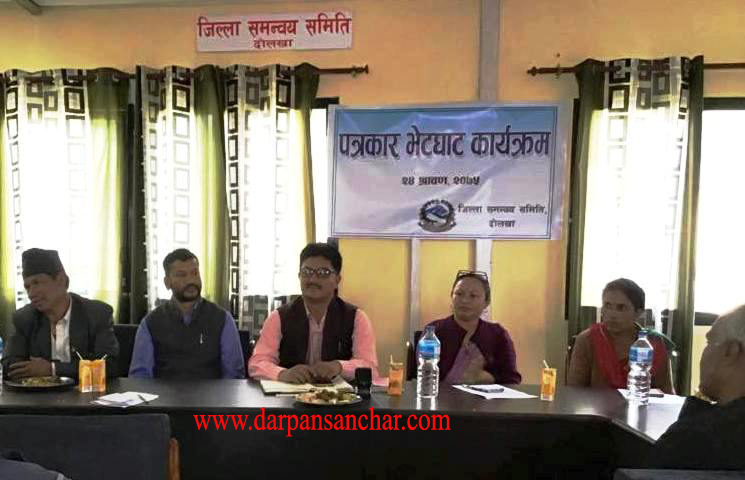पत्रकार सम्मेलनमा जिल्ला समन्वय समिति दोलखाका उप–प्रमुख मनमाया जिरेल, जिल्ला समन्वय अधिकारी तुल्सीनाथ गौतम, समन्वय सदस्य मुरारी शिवाकोटी अन्य जनप्रतिनिधी लगायत विभिन्न सञ्चार माध्यममा कार्यरत पत्रकारहरुको सहभागीता रहेको थियो ।