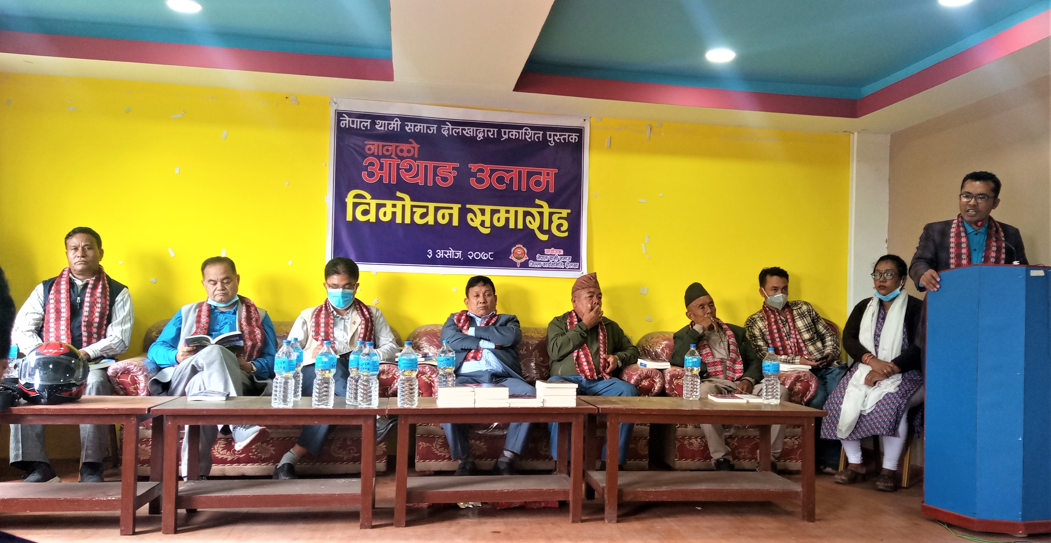 चरीकोट, ३ असोज : दोलखा जिल्लाको उतरी क्षत्रमा मुख्य वसोवास रहेको अल्पसंख्यक जाती थामीको भाषा संस्कृती कला हरुलाई समेटेर तयार पारिएको पुस्तक नानको आथाङ उलाम (अध्यरो बाट उज्याले तर्फ) नामक पुस्तक आज विमोचन गरिएको छ ।