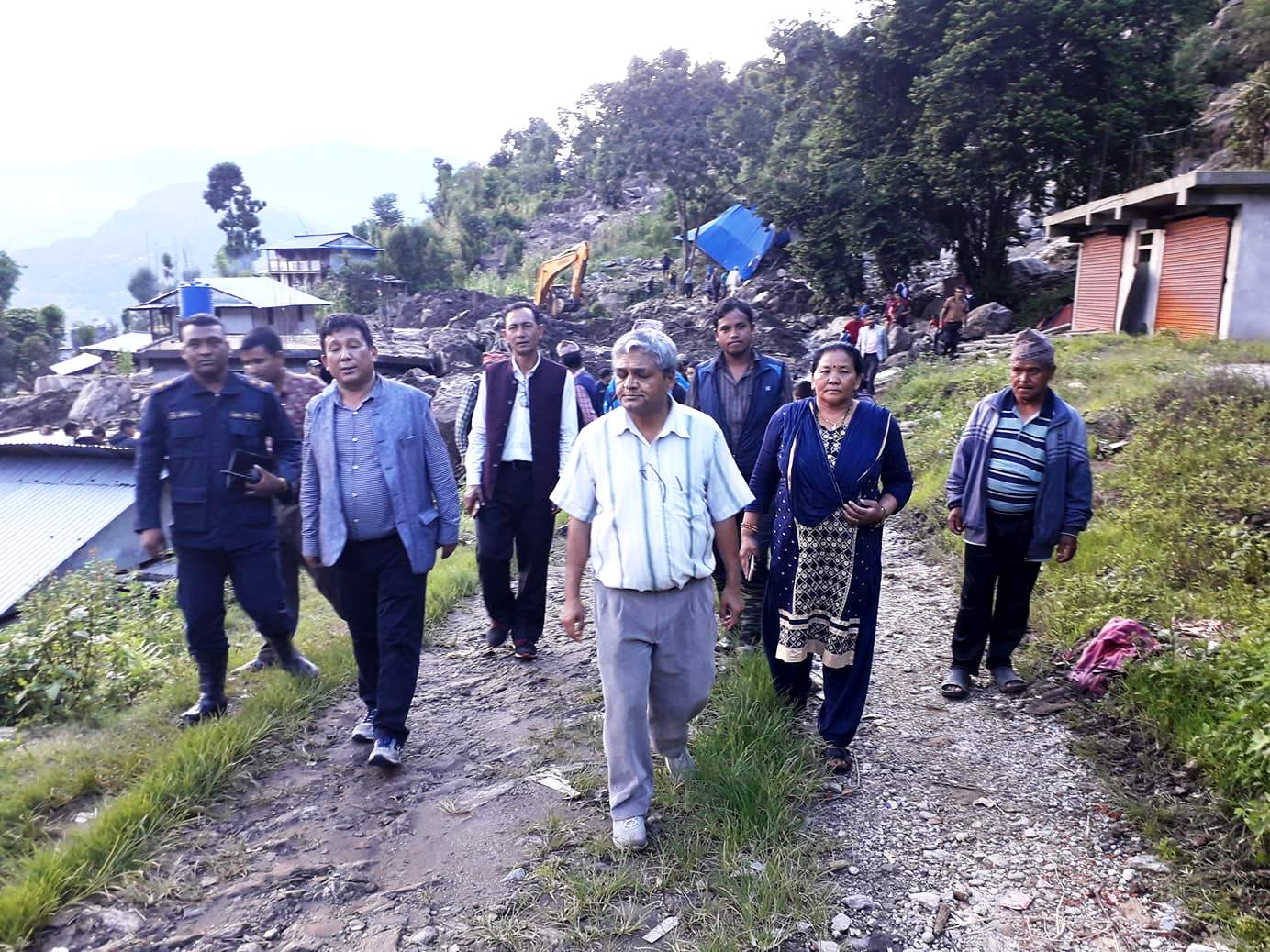 पहिरोले ठुलो क्षेती पुगेको दोलखाको गौरिशंकर गाँउपालिका वडा न १ र २ जुंगुमा संसद, पुर्व मन्त्री तथा नेकपाका नेताहरुले पिडितहरुको घर दैलोमा पुगेका छन् ।