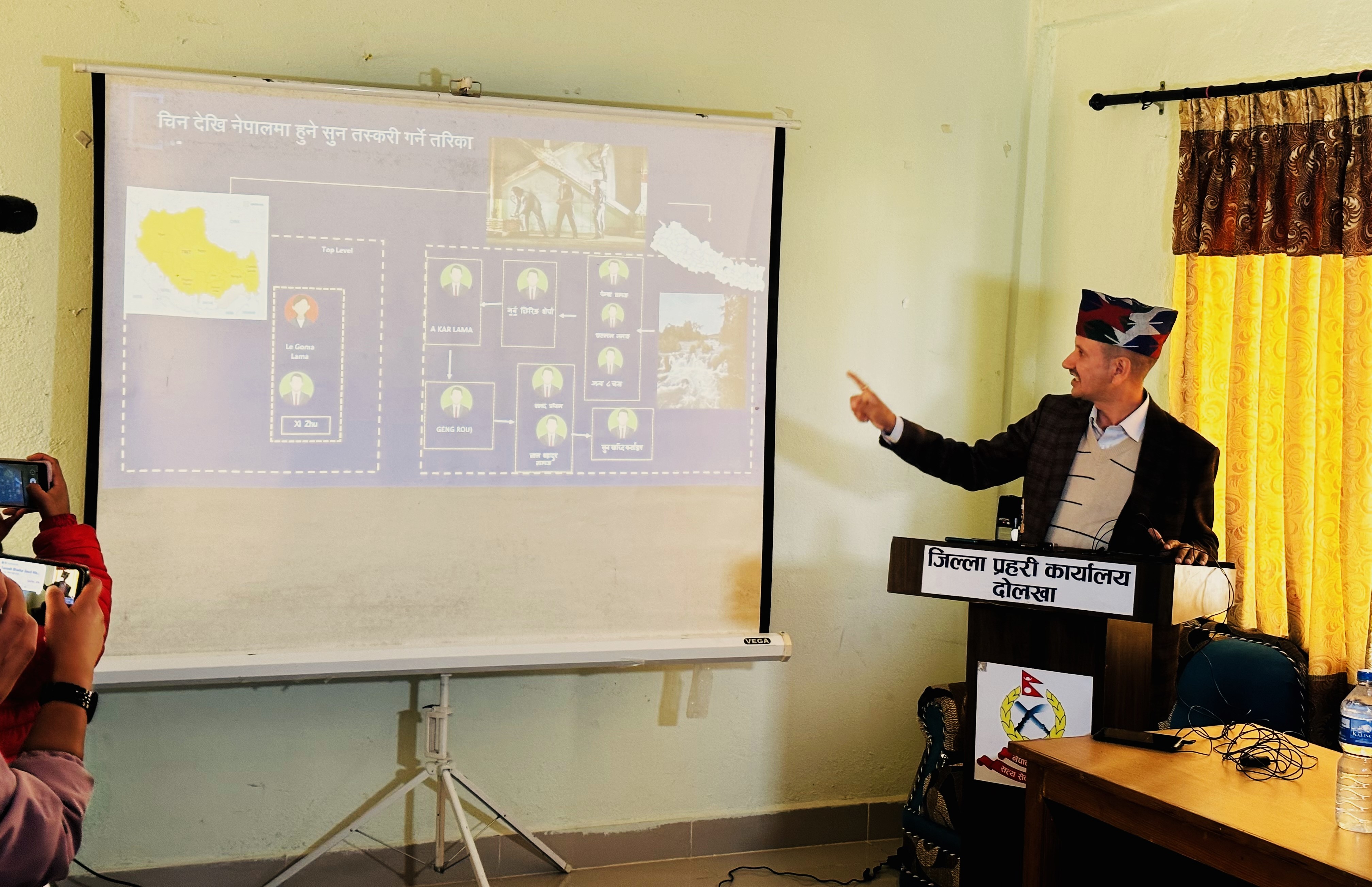 जिल्ला प्रहरी कार्यलय दोलखामा आज पत्रकार सम्मेलनको आयोजना गरी सुन तस्करी प्रकरण सम्वन्धमा नेपाल प्रहरी र केन्द्रीय अनुसन्धान व्युरोले तयार पारेको अनुसन्धान प्रतिवेदन सार्वजनीक गरेको हो । दोलखा जिल्लाको चिन संग सिमा जोडिएको उतरी नाकाको प्रयोग गर्दै दोलखा भित्रिएको ११ किलो सुन सहित सुन कारोवारमा संलग्न केहि व्यक्तिहरुलाई दोलखा प्रहरीले गत असोज १० गते पक्राउ गरेको थियो । दोलखाको नाका हुँदै ठुलो परिमाणमा सुन तस्करीहुने गरेको तथ्य वाहिरिए संगै केहि व्यक्तिहरुलाई नियन्त्रणमा लिएर केन्द्रीय अनुसन्धान व्युरो र प्रहरीले करिव २ महिना लगाएर अनुसन्धान गरेको थियो । दोलखा प्रहरी प्रमुख डिएसपी दिपक खड्काका अनुसार दोलखा नाकाहुँदै एक वर्षको अवधीमा सुन तस्करी गर्ने समुहले करिव ३३ किलो सुन ओसारपसार गरेको पाइएको बताउनु भयो ।