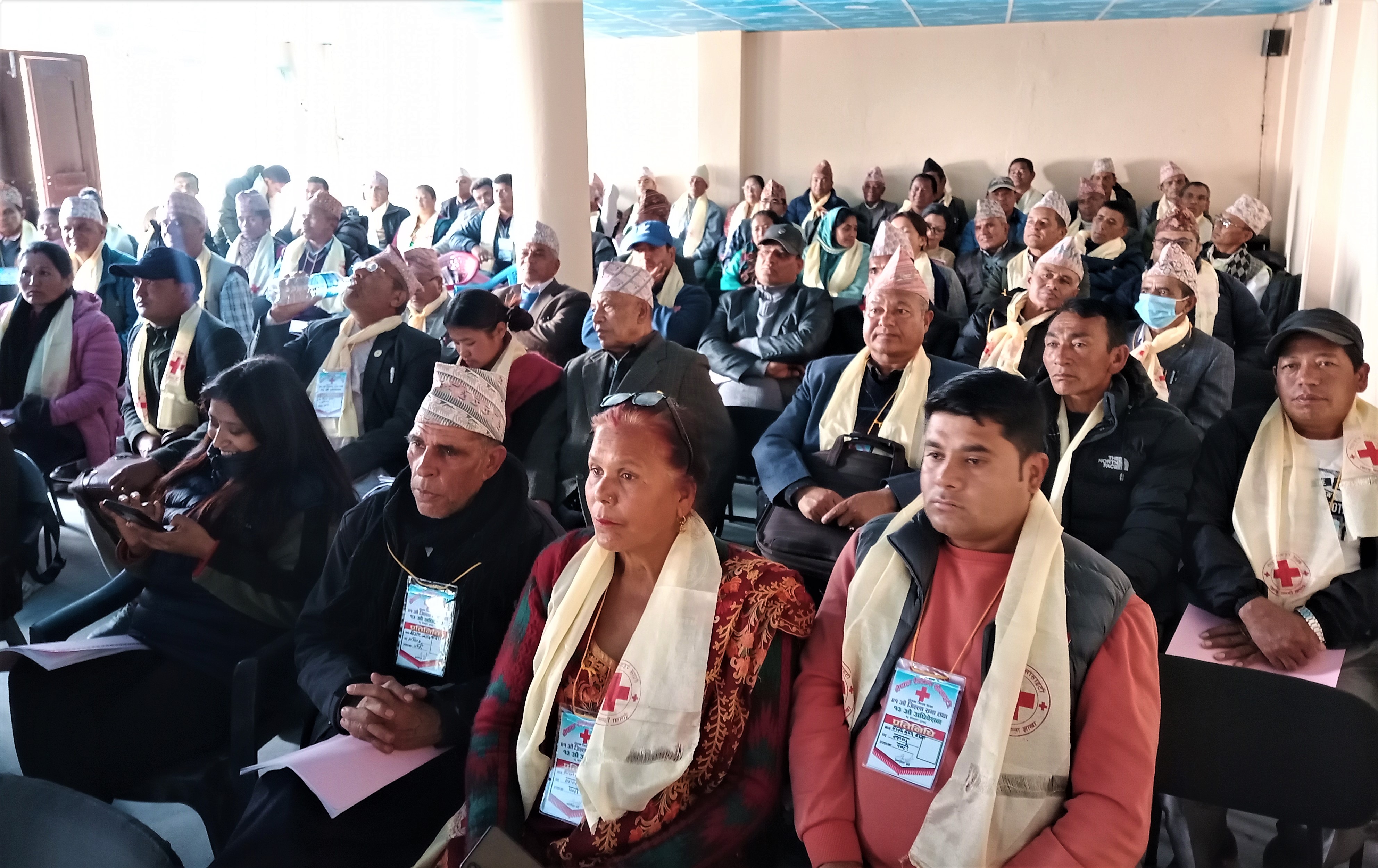 नेपाल रेडक्रस सोसाइटी दोलखा शाखाका निर्वतमान सभापति गोकर्ण पोखरेलको अध्यक्षतामा भएको सभामा नेपाल रेडक्रस सोसाइटी वाग्मति प्रदेशका अध्यक्ष भोला नाच रुपाखेति, प्रदेशका महासचिव रामजी पौडेल, नेकपा एमाले दोलखाका अध्यक्ष नर बहादुर श्रेष्ठ, भिमेश्वर नगरपालिकाका प्रमुख इश्वर नारायण मानन्धर, प्रमुख जिल्ला अधिकारी शेखर पौडेल लगाएतले मन्तव्य व्यक्त गर्नुभयको थियो ।\