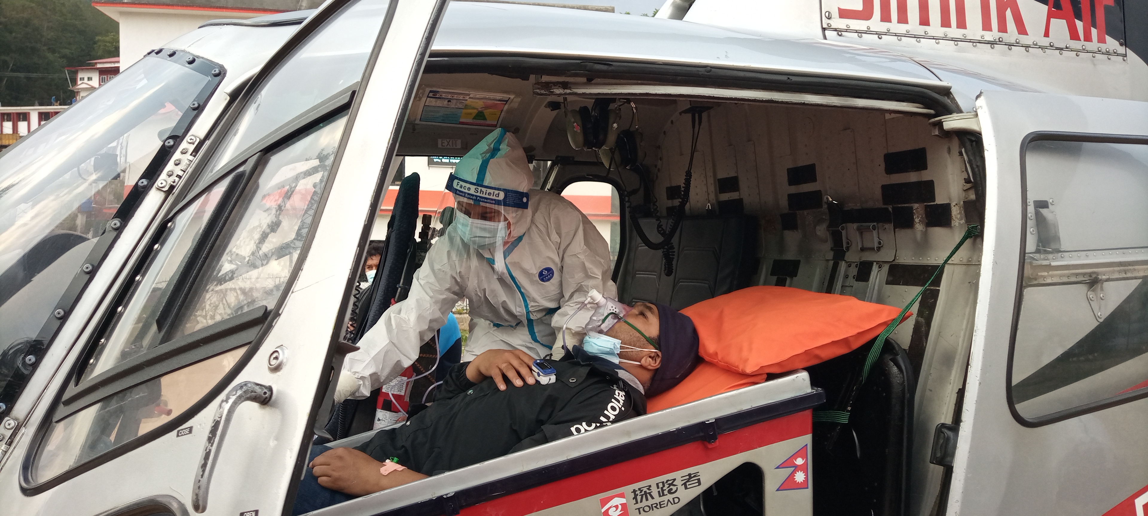 चरीकोट, ९ जेठ , दोलखाका पत्रकार रविन्द्र गौतमलाई स्वासप्रस्वासमा समस्या देखिए पछि थप उपचारको लागि हेलिकप्टर मार्फत काठमाण्डौ लगिएको छ ।