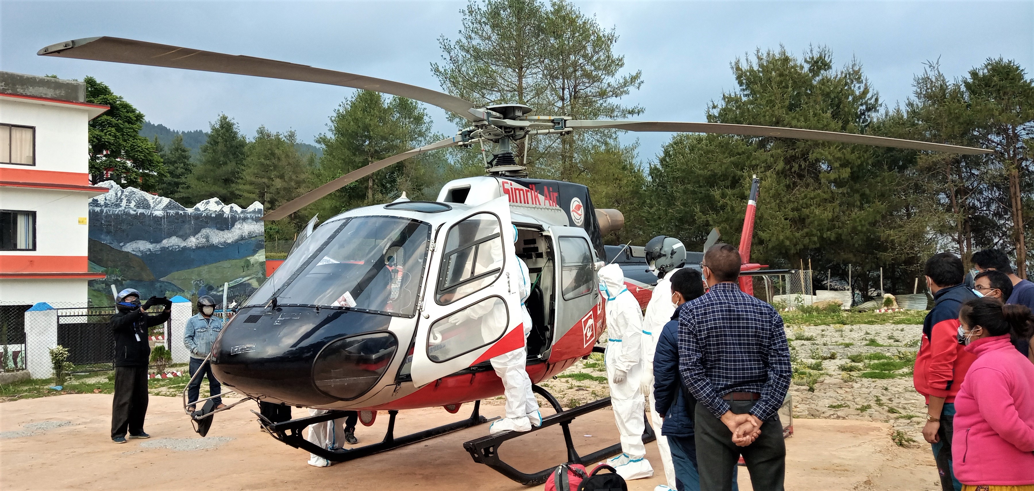 चरीकोट, ९ जेठ , दोलखाका पत्रकार रविन्द्र गौतमलाई स्वासप्रस्वासमा समस्या देखिए पछि थप उपचारको लागि हेलिकप्टर मार्फत काठमाण्डौ लगिएको छ ।