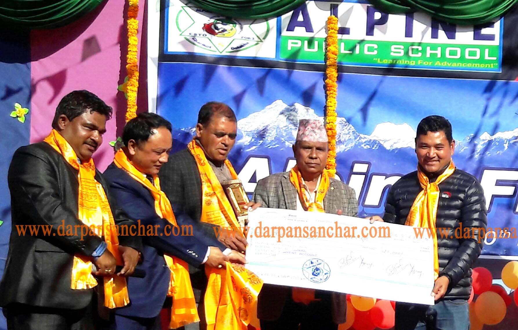 स्कुलले आयोजना गरेको अल्पाईन फिस्टा २०७६ को अवसरमा महासंघलाई बीस हजारको चेक अल्पाईन पब्लिक स्कुलका प्रिन्सीपल उद्धव थापाले महासंघका अध्यक्ष जीवन लामालाई प्रदान गर्नुभएको हो । जिल्लाकै नमूना र सूचनामैत्री भवन निर्माणको लागि स्कुलहरुबाट यो पहिलो आर्थिक सहयोग हो । सबैको साझा संस्था र राज्यको चौथो अंग पत्रकार जगत भएको हुनाले भवन निर्माणलाई सहयोग गरेको प्रिन्सीपल थापाले बताउनुभयो ।