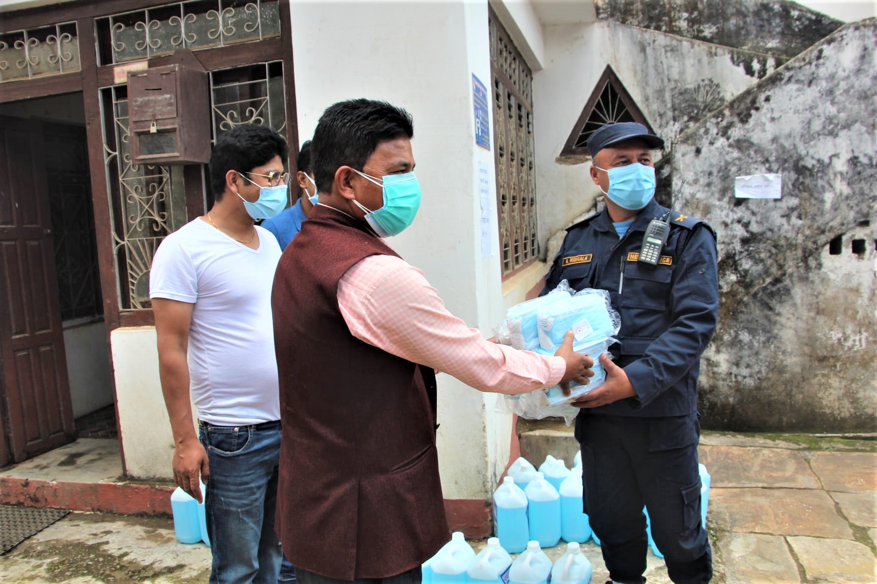 जिल्ला समन्वय समिती दोलखामा आज दोलखाको सवै स्थानिय तहलाई स्वास्थ्य सामग्री वितरण गरिएको र गाउँपालिकाहरुले पालिका भित्रका सवै स्वास्थ्य संस्था तथा अस्पतालहरुमा उपलब्ध गराउने रिनन पोखरेलले बताउनु भयो । दोलखामा पछिल्लो समय विश्वमा महामारीको रुपमा फैलिदै गएको कोरोना भाइसर नियन्त्रण गराउने उदेश्यले पुर्व मन्त्री तथा नेकपा एमाले वागमती प्रदेश कमिटिका अध्यक्ष आनन्द पोखरेलले दोलखामा एक हजार लिटर सेनिटाइजर,४० हजार पिस मास्क, ३४ हजार पिस सेनिटाइजर वितरण गर्नु भएको हो ।