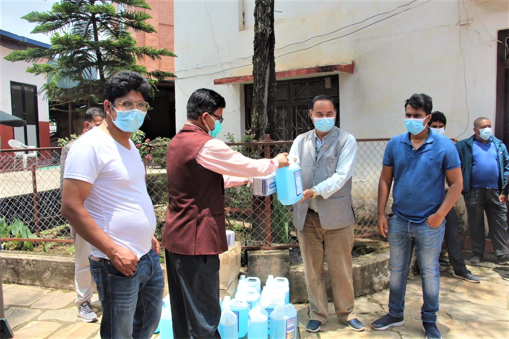 नेकपा एमाले बागमती प्रदेश अध्यक्ष तथा पुर्व पर्यटन मन्त्री पोखरेलले दोलखाका दुइ नगरपालिका र सात गाउँपालिका गरी नै वटा स्थानिय तह तथा अस्पताल विभिन्न संघ संस्थाहरुलाई स्वास्थ्य सामग्री वितरण गर्नु भएको हो । जिल्लाको प्रत्येक स्थानिय तहलाई कोभिड रोकथाम तथा नियन्त्रणका लागि ४ हजार पिस मास्क, ८० लिटर सेनिटाइजर र ३ हजार चक्कि सिटामोल प्रदान गर्नुभएको हो ।