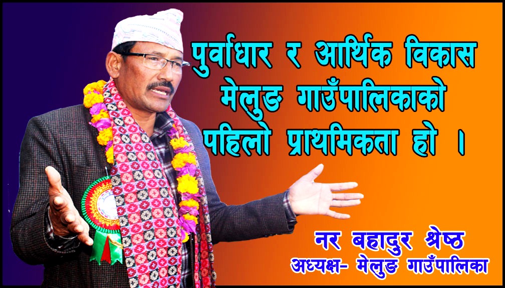 दोलखाको मेलुङ गाउँपालिकाले आर्थिक वर्ष २०६७÷७७ का लागि पूर्वाधार विकास कार्यक्रमलाई प्राथमिकता दिएको गाउँपालिका प्रमुख नर बहादुर श्रेष्ठले बताउनु भएको छ ।