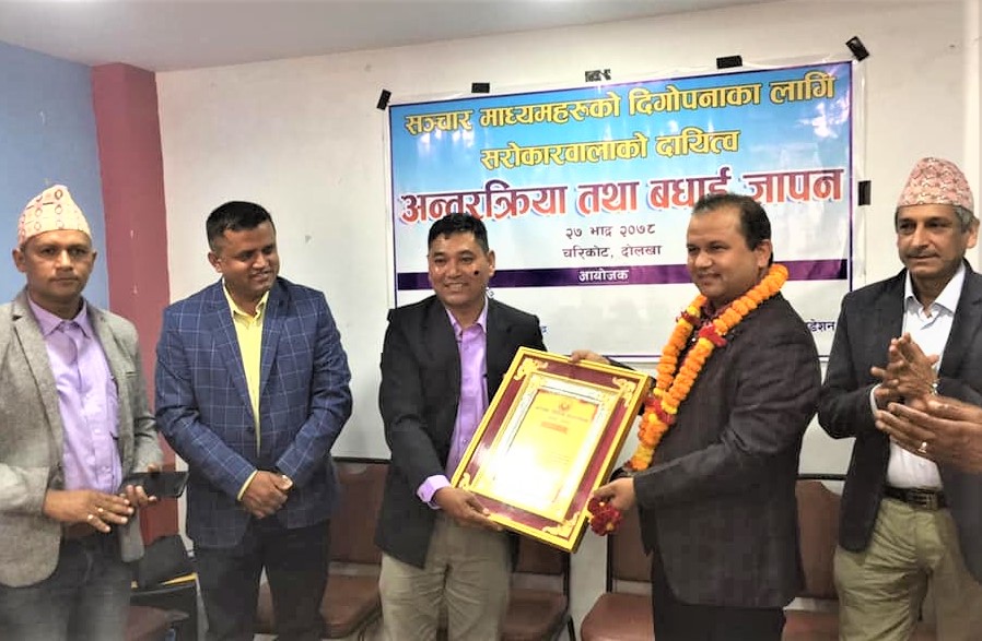 दोलखाबाट प्रतिनित्व गर्दै मिडिया क्षत्रमा राष्ट्रिय स्तरमा पुग्न सफल भएका प्रेस काउन्सीलका अध्यक्ष सहित जिल्लाका तिन जना पत्रकार दोलखामा आज सम्मानित भएका हुन् । सम्मानित हुनुहुनेहरुमा प्रेस काउन्सीलका अध्यक्ष बालकृष्ण वस्नेत, प्रेस काउन्सीलका सदस्य चिरञ्जीवी मास्के र नेपाल पत्रकार महासंघका केन्द्रिय सदस्य रमेश खतिवडा रहेका छन् । दोलखा जिल्लामा जन्म भई पत्रकारीता क्षत्रमा उच्च स्थानमा पुग्न सफल भएको र पत्रकारिता क्षत्रबाट दोलखा जिल्लामा गर्नु भएको योगदानको प्रशंसा गदै चरिकोट मिडिया फाउन्डेशन र हुराडेक नेपाल दोलखाले सम्मान तथा वधाई ज्ञापन गरेको हो ।