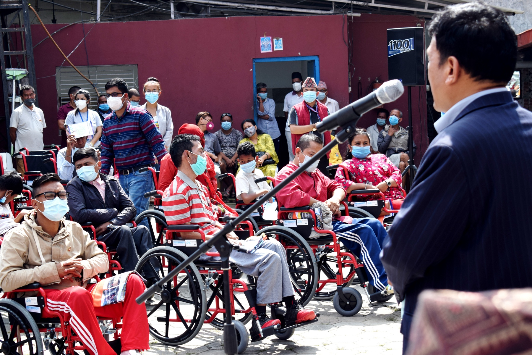 बुधबार काठमाडौंमा एक कार्यक्रमकाबीच वितरण गरिएको सो ह्वीलचियरको बजार मूल्य १५ हजारदेखि २ लाख ५० हजारसम्मका रहेका छन । कार्यक्रममा बोल्दै मन्त्री गुरुङले कोरोना भाइरसका कारण झनै समस्यामा परिरहेका अपांगता भएका व्यक्तिहरुको जिम्मा राज्यले लिने बताउनु भयो । उहाँले भौतिक पूर्वाधारसहितको अपांगता मैत्री वातावरण निर्माणमा ध्यान दिन पनि सबैलाई आह्वान गर्नु भयो । ‘अपांगता मैंत्री वातावरण निर्माणमा लाग्न म सबैलाई आह्वान गर्दछु,’ मन्त्री गुरुङले भन्नु भयो,‘कोराना भाईरसका कारण झनै संकटमा परेका अपांगता भएका व्यक्तिहरुको जिम्मा राज्यले लिन्छ ।’