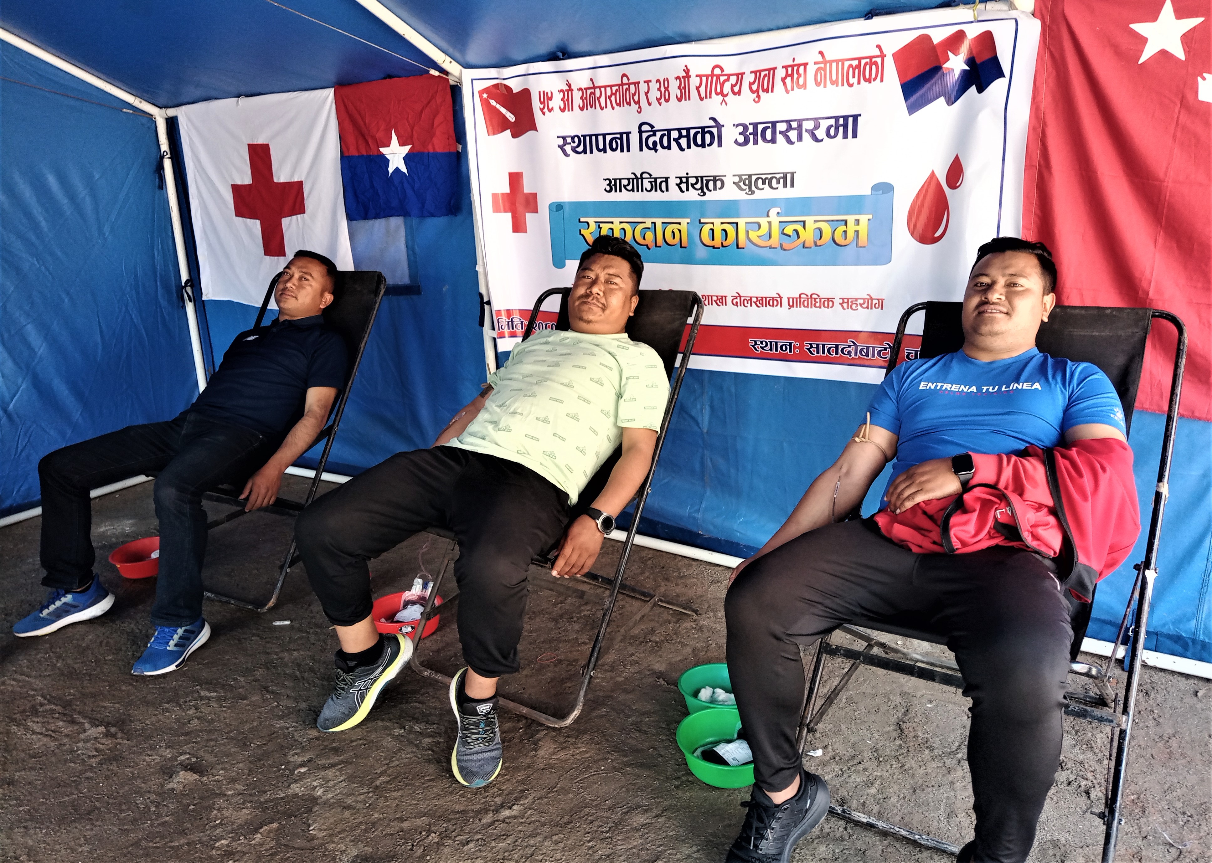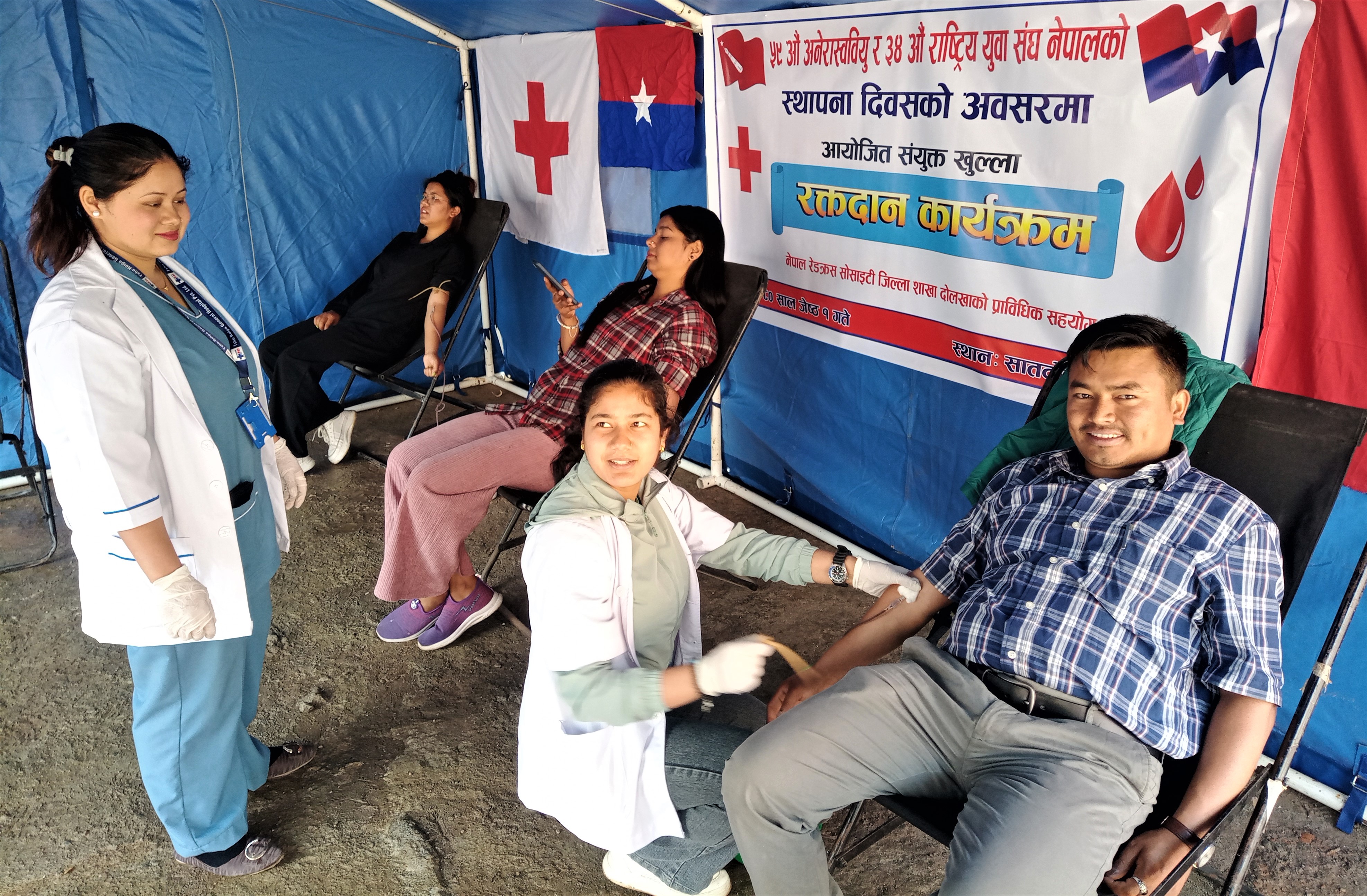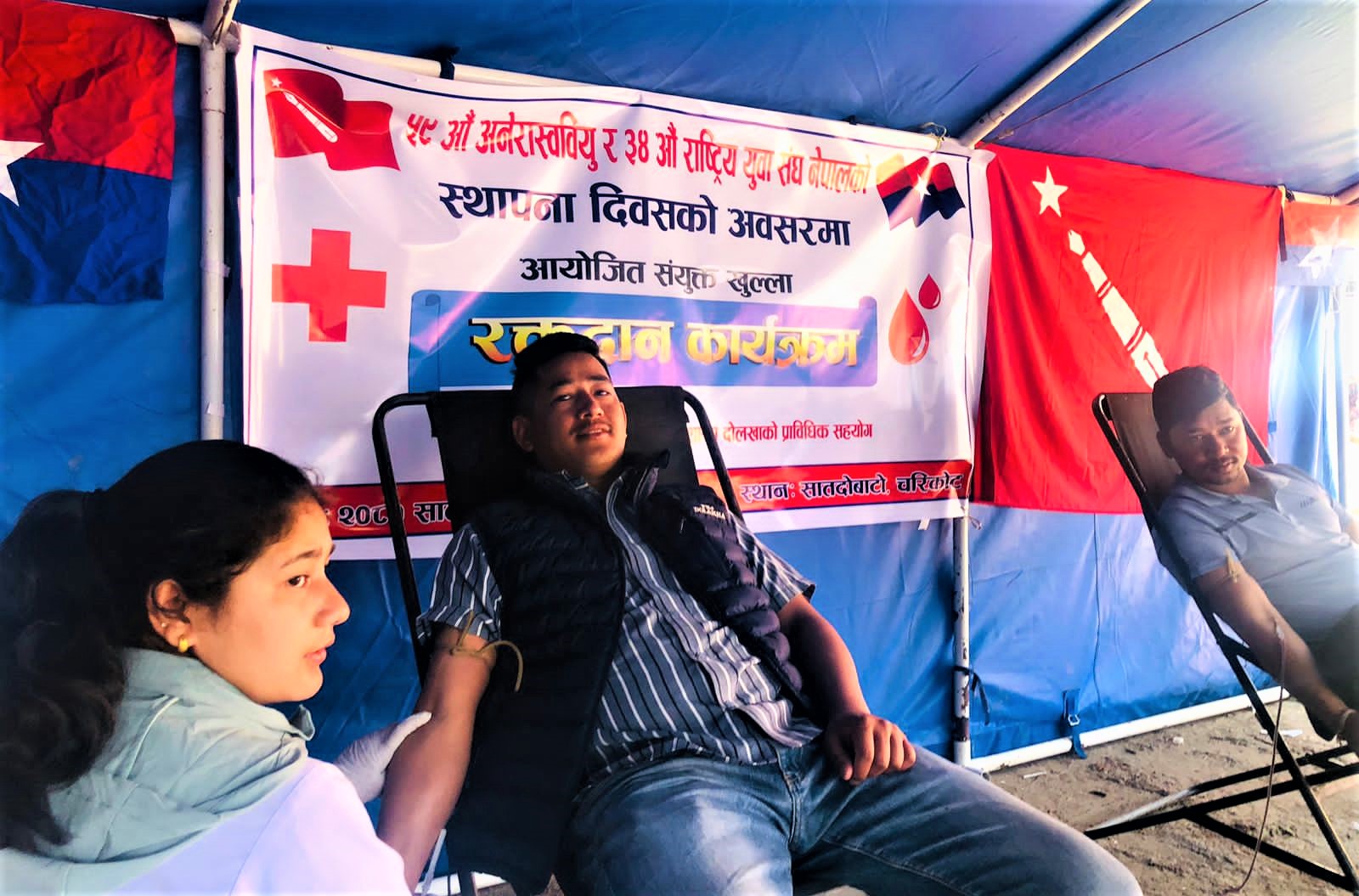 नेकपा एमाले निकट विधार्थीहरुको संगठन अनेरास्वीयुको ५९ औँ स्थापना दिवस र युवा संघ नेपालको ३४ औँ स्थापना दिवसरको अवसरमा संयुक्त आयोजनामा चरिकोट सातदोवाटोमा खुल्ला रक्तदान कार्याक्रम सम्पन्न भएको हो । नेपाल रेडक्रस सोसाइटी दोलखा शाखा संगको सहकार्यमा आयोजना गरिएको रक्तदान कार्याक्रममा ३५ जना व्यक्तिहरुले रक्तदान गर्नुभएको अनेरास्वीयुका केन्द्रीय सदस्य राजकुमार ढुंंगेलले जानकारी दिनुभयो । रक्तदान गर्नेहरुमा ३१ जना पुरुष र ४ जना महिला रहेका छन् । रगतको अभावमा अकालमा कसैले पनि ज्यान गुमाउनु नपरोस भन्ने उदेश्यले स्थापना दिवसको अवसरमा रक्तदान कार्यक्रमको आयोजना गरिएको युवा संघ दोलखाका प्रवक्ता सरोज वस्नेतले जानकारी दिनुभयो ।