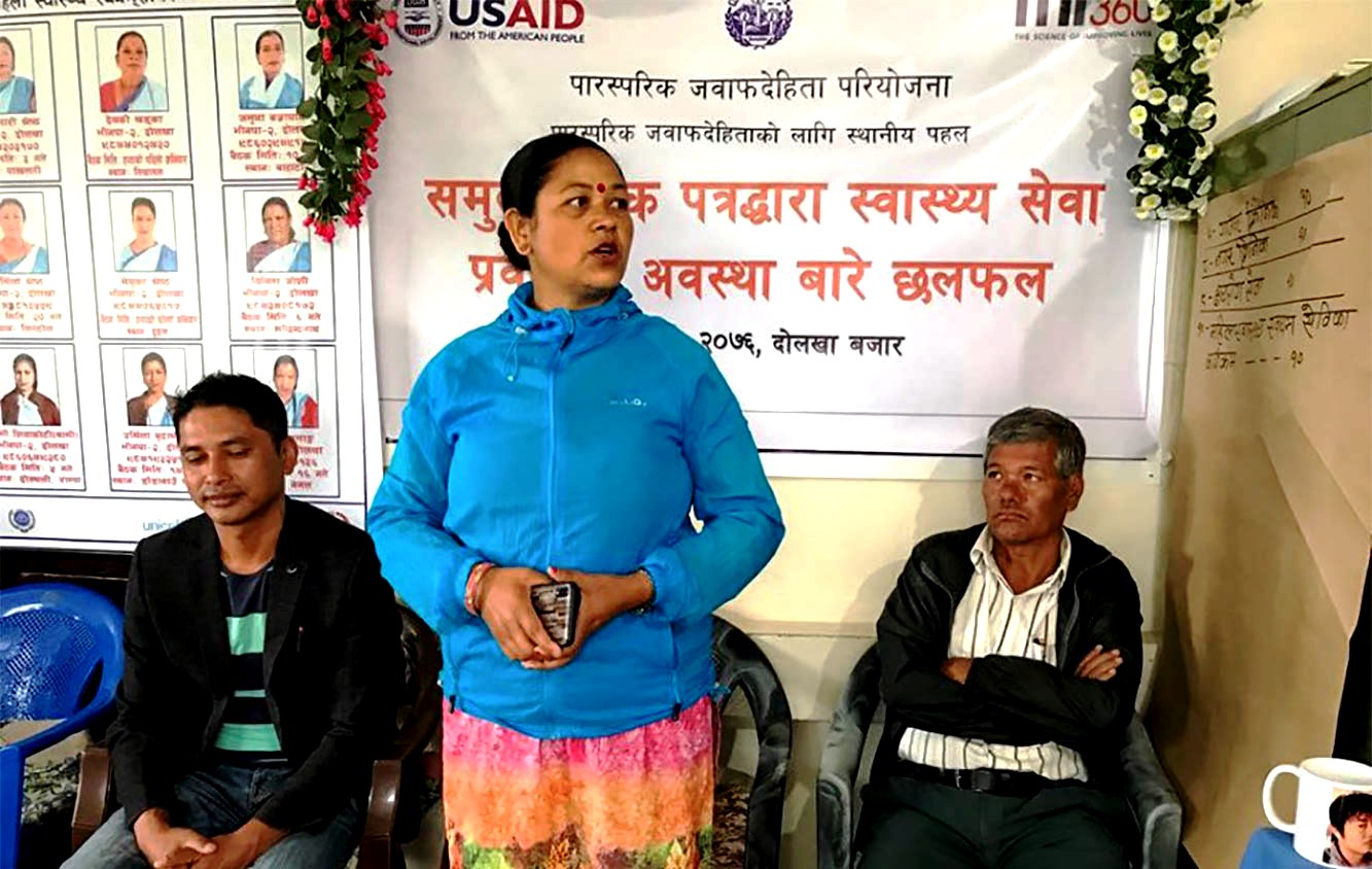 स्वास्थ्य चौकीले प्रदान गर्ने सेवा तथा सुविधालाई प्रभावकारी बनाउनका लागि दोलखामा सामुदायिक अंक पत्रको माध्यमबाट छलफल सम्पन्न गरिएको छ ।