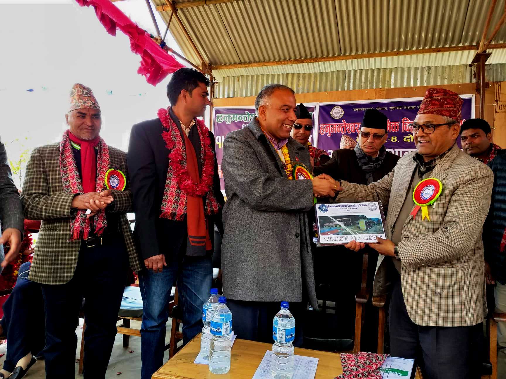 विद्यालय ब्यवस्थापन समितिका अध्यक्ष पुन्यप्रसाद चौलागाईंको अध्यक्षतामा सम्पन्न भएको कार्याक्रममा दोलखा क्षेत्र नम्बर २ का प्रदेश सांसद एवम् नेकपा केन्द्रिय सदस्य पशुपती चौलागाईं ,बैतेश्वर गाउँपलिकाका उपाध्यक्ष रबिचन्द्र आचार्य ,जिल्ला शिक्षा तथा समन्वय इकाई प्रमुख शंकरबाबू श्रेष्ठ ,नेकपा दोलखाका प्रस्तावित अध्यक्ष भिमप्रसाद दाहाल, हनुमन्तेश्वर क्याम्पसका क्याम्पस प्रमुख तारा प्रसाद पन्त, शिक्षक सिताराम दाहाल तथा कमल दहाल लगाएतले मन्तब्य राख्नुभएको थियो ।