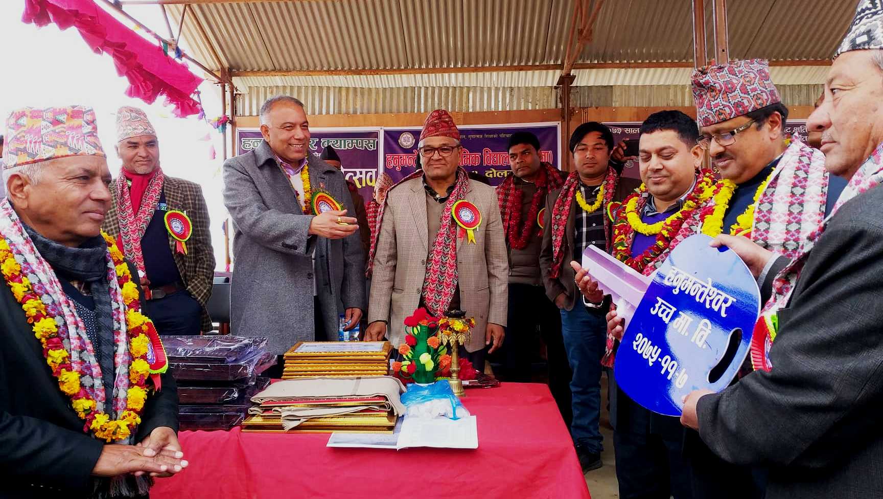 विद्यालय ब्यवस्थापन समितिका अध्यक्ष पुन्यप्रसाद चौलागाईंको अध्यक्षतामा सम्पन्न भएको कार्याक्रममा दोलखा क्षेत्र नम्बर २ का प्रदेश सांसद एवम् नेकपा केन्द्रिय सदस्य पशुपती चौलागाईं ,बैतेश्वर गाउँपलिकाका उपाध्यक्ष रबिचन्द्र आचार्य ,जिल्ला शिक्षा तथा समन्वय इकाई प्रमुख शंकरबाबू श्रेष्ठ ,नेकपा दोलखाका प्रस्तावित अध्यक्ष भिमप्रसाद दाहाल, हनुमन्तेश्वर क्याम्पसका क्याम्पस प्रमुख तारा प्रसाद पन्त, शिक्षक सिताराम दाहाल तथा कमल दहाल लगाएतले मन्तब्य राख्नुभएको थियो ।