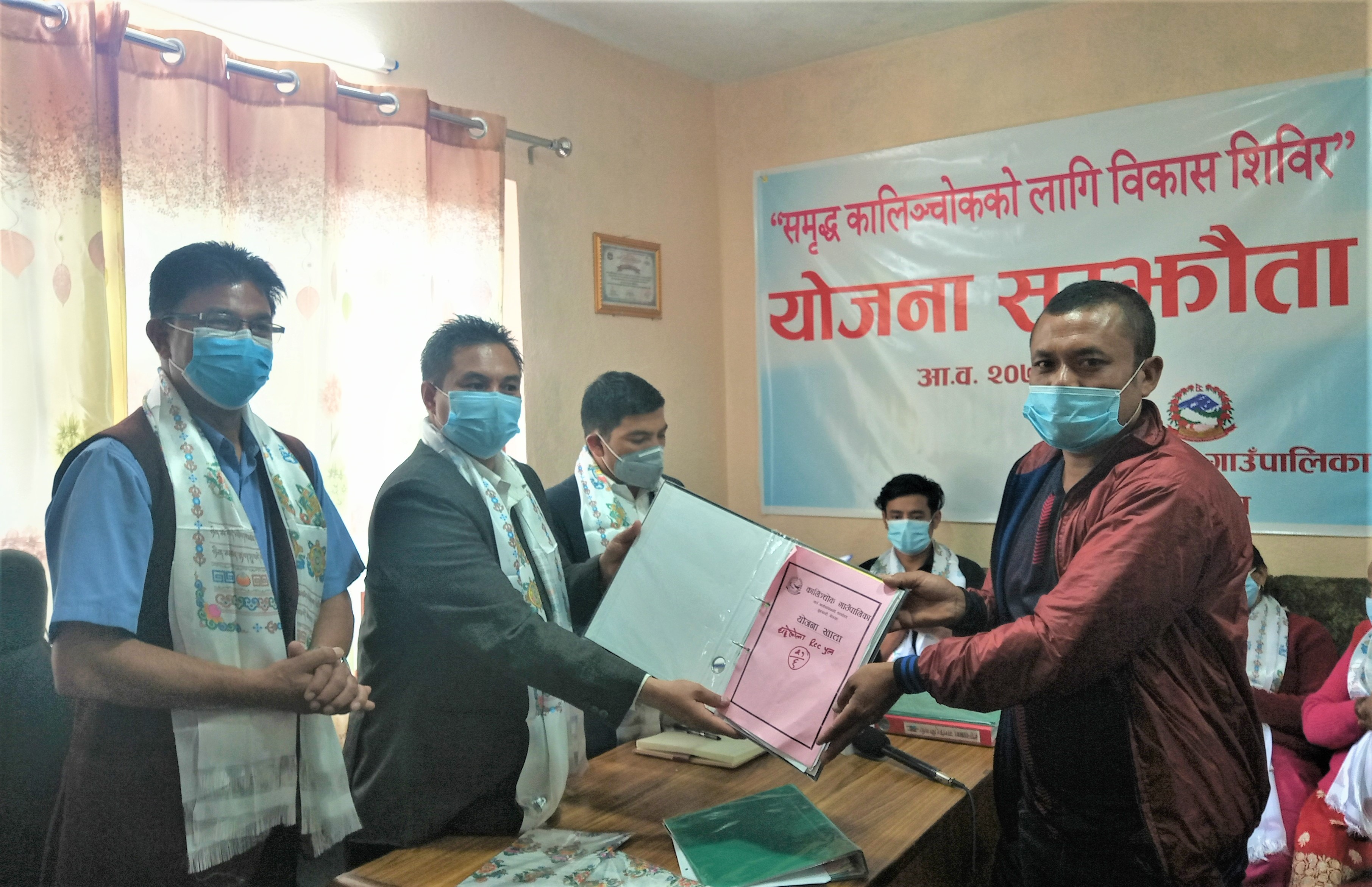 पालिकाले उपभोक्त समितीहरुलाई सहज गराउने र छिटो र दिगो काम गराउने उदेश्यले सम्वृद्ध कालिन्चोकका लागि विकास शिविर योजना सम्झौता कार्याक्रमको आयोजना गरि गाउँ गाउँमानै गएर योजना सम्झौताको काम सुरु गरेको हो । पालिकाको आर्थिक वर्ष २०७८÷७९ मा गाउँपालिका बाट छनोट भएका योजनाहरु समयमानै सम्पन्न गराउन र उपभोक्ताहरुलाई योजना सम्झौता गर्नका लागि पालिका सम्म आउनु पर्ने वाध्यतालाई हटाएर सहज गराउने उदेश्यले वडा वडा मा नै शिविरको आयोजना गरिएको गाउँ पालिका अध्यक्ष विन कुमार थामीले बताउनु भयो । पालिकामा योजना सम्झौताको लागि विभिन्न वडाहरुबाट एक दिनको बाटो खर्च गरेर पालिका आउनु पर्ने वाध्यता रहेको थियो । पालिकामा आउँदा सम्झौताको लागि कागजपत्र नपुग्ने र उपभोक्ताहरुले दुख पाउने गरेकोमा टोल टोलमा नै गएर योजना सम्झौता गर्दा सहज हुने गरेको प्रमुख प्रसाशकिय अधिकृत नवराज वलिले बताउनु भयो ।